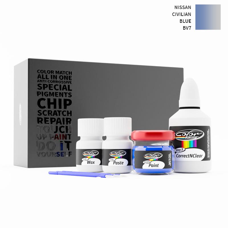 Our patented solution system only treats the special paint we mix for your Nissan Civilian Blue BV7 and does not interfere with your factory paint. By this method we are sure that you can not harm your Nissan Civilian Blue BV7 Color and you can do repairs like a pro for your Nissan with BLUE color.