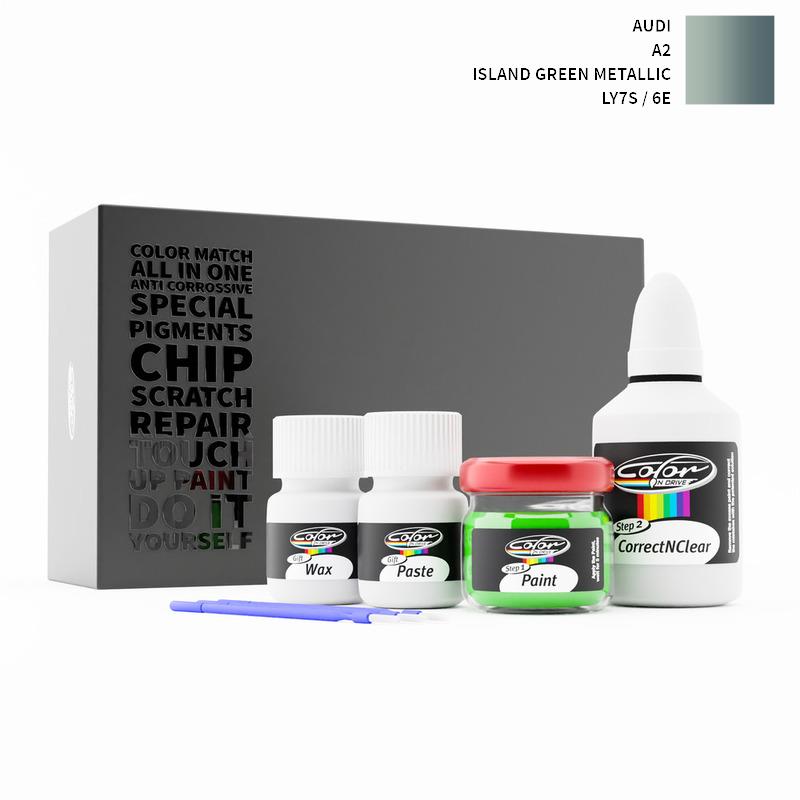 Neem afscheid van steenslag en krassen op uw Audi A2 Island Green Metallic LY7S / 6E. Met gepatenteerde Duitse technologie lost Color N Drive uw probleem op in 3 eenvoudige stappen. Elke KIT wordt op maat bereid volgens de originele lakkleur van uw fabrikant.