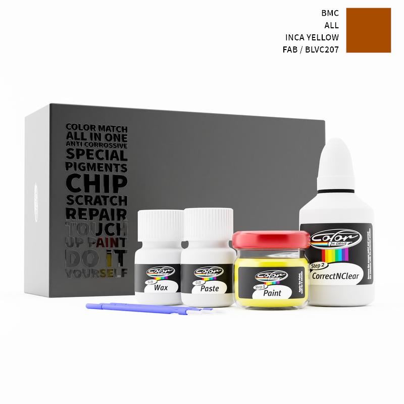 Neem afscheid van steenslag en krassen op uw BMC ALL Inca Yellow FAB / BLVC207. Met gepatenteerde Duitse technologie lost Color N Drive uw probleem op in 3 eenvoudige stappen. Elke KIT wordt op maat bereid volgens de originele lakkleur van uw fabrikant.