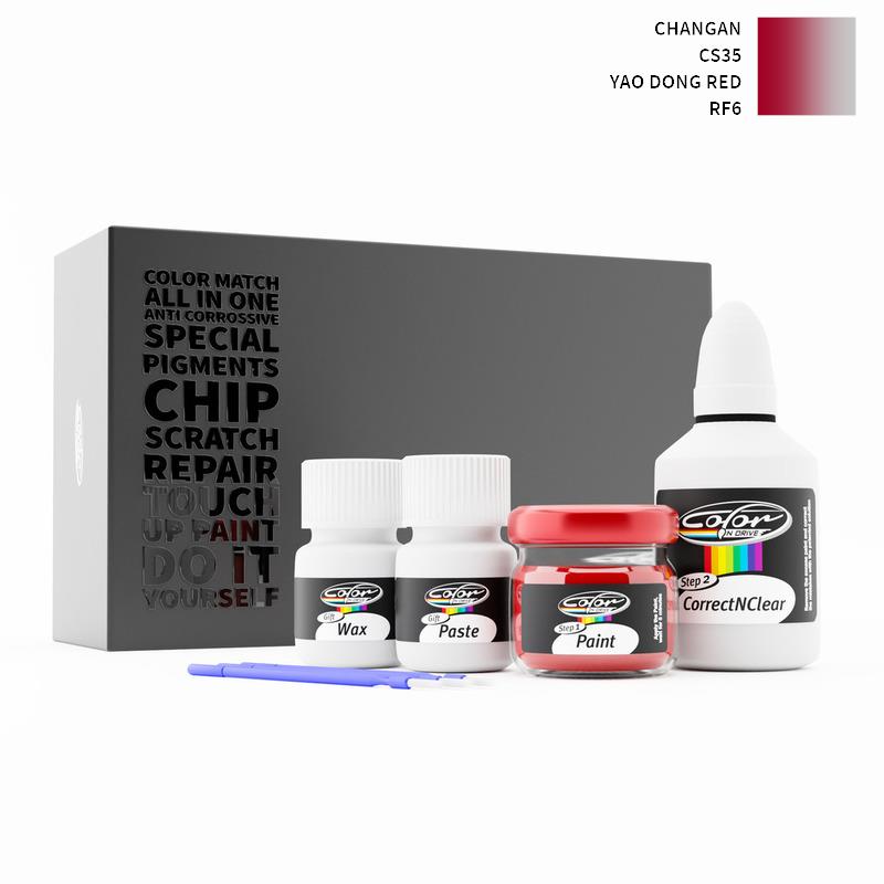 Neem afscheid van steenslag en krassen op uw Changan Cs35 Yao Dong Red RF6. Met gepatenteerde Duitse technologie lost Color N Drive uw probleem op in 3 eenvoudige stappen. Elke KIT wordt op maat bereid volgens de originele lakkleur van uw fabrikant.