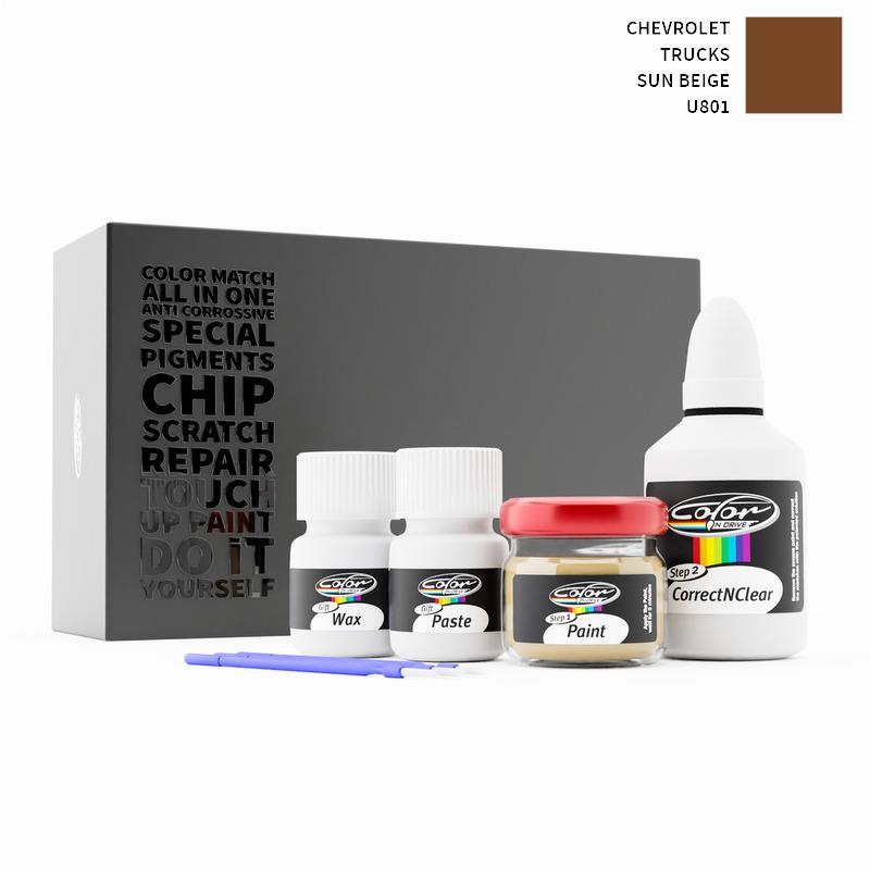 Neem afscheid van steenslag en krassen op uw Chevrolet Trucks Sun Beige U801. Met gepatenteerde Duitse technologie lost Color N Drive uw probleem op in 3 eenvoudige stappen. Elke KIT wordt op maat bereid volgens de originele lakkleur van uw fabrikant.