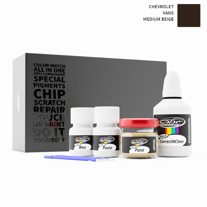 Neem afscheid van steenslag en krassen op uw Chevrolet Vans Medium Beige . Met gepatenteerde Duitse technologie lost Color N Drive uw probleem op in 3 eenvoudige stappen. Elke KIT wordt op maat bereid volgens de originele lakkleur van uw fabrikant.