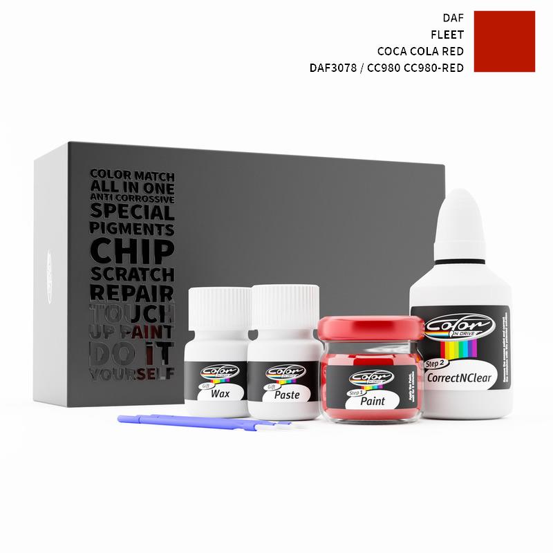 Neem afscheid van steenslag en krassen op uw DAF Fleet Coca Cola Red DAF3078 / CC980 CC980-RED. Met gepatenteerde Duitse technologie lost Color N Drive uw probleem op in 3 eenvoudige stappen. Elke KIT wordt op maat bereid volgens de originele lakkleur van uw fabrikant.