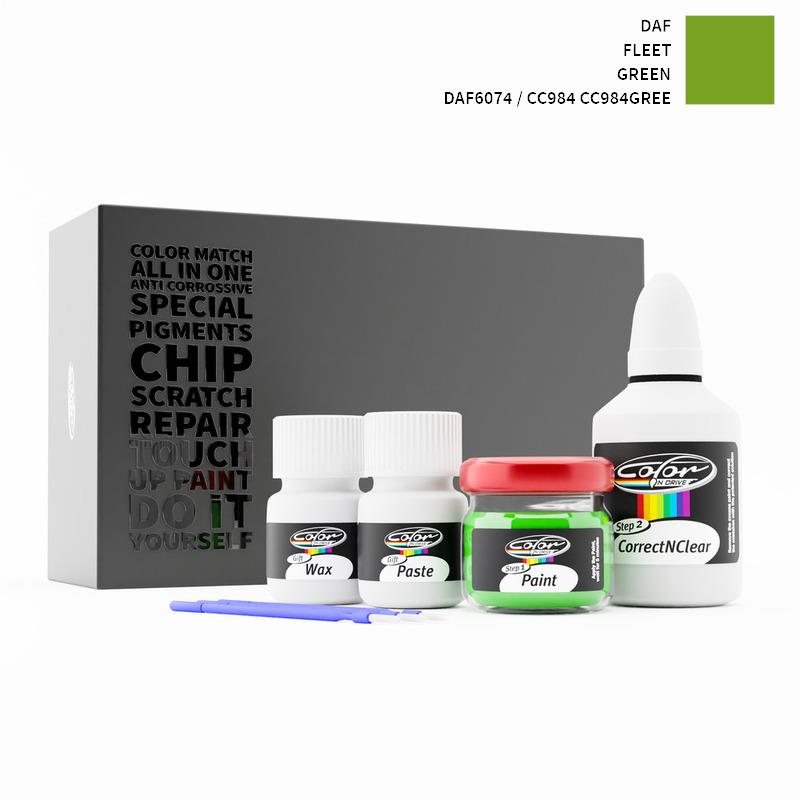 Ons gepatenteerde oplossingssysteem behandelt alleen de speciale lak die wij voor uw DAF Fleet Green DAF6074 / CC984 CC984GREE mengen en tast de fabriekslak van uw DAF niet aan. Met deze methode zijn wij er zeker van dat u de kleur van uw DAF Fleet Green DAF6074 / CC984 CC984GREE niet kunt beschadigen en dat u reparaties als een professional kunt uitvoeren op uw DAF met de kleur GREEN.