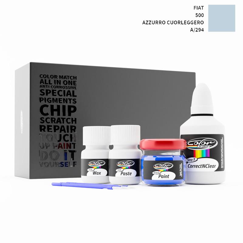 Neem afscheid van steenslag en krassen op uw Fiat 500 Azzurro Cuorleggero 294/A. Met gepatenteerde Duitse technologie lost Color N Drive uw probleem op in 3 eenvoudige stappen. Elke KIT wordt op maat bereid volgens de originele lakkleur van uw fabrikant.