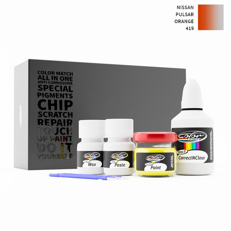 Neem afscheid van steenslag en krassen op uw Nissan Pulsar Orange 419. Met gepatenteerde Duitse technologie lost Color N Drive uw probleem op in 3 eenvoudige stappen. Elke KIT wordt op maat bereid volgens de originele lakkleur van uw fabrikant.