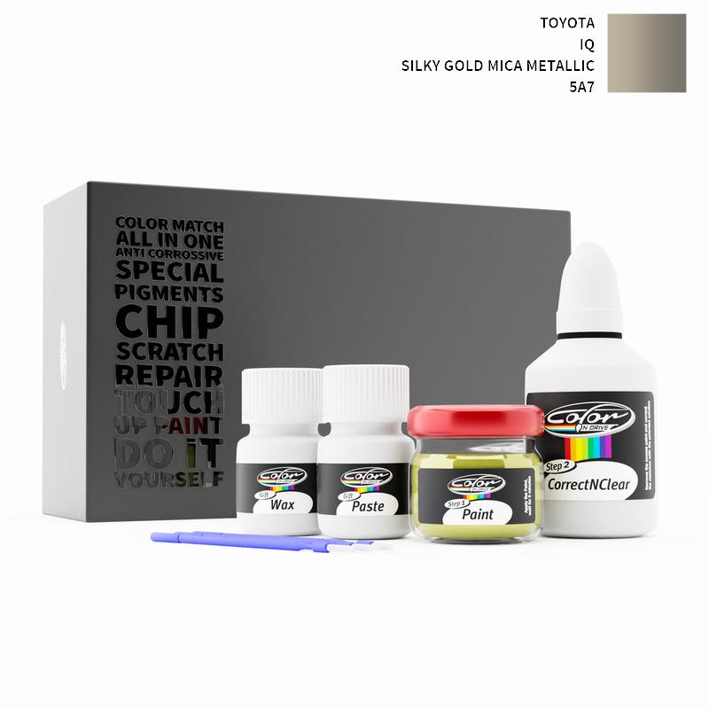 Ons gepatenteerde oplossingssysteem behandelt alleen de speciale lak die wij voor uw Toyota IQ Silky Gold Mica Metallic 5A7 mengen en tast de fabriekslak van uw Toyota niet aan. Met deze methode zijn wij er zeker van dat u de kleur van uw Toyota IQ Silky Gold Mica Metallic 5A7 niet kunt beschadigen en dat u reparaties als een professional kunt uitvoeren op uw Toyota met de kleur SILKY GOLD MICA METALLIC.