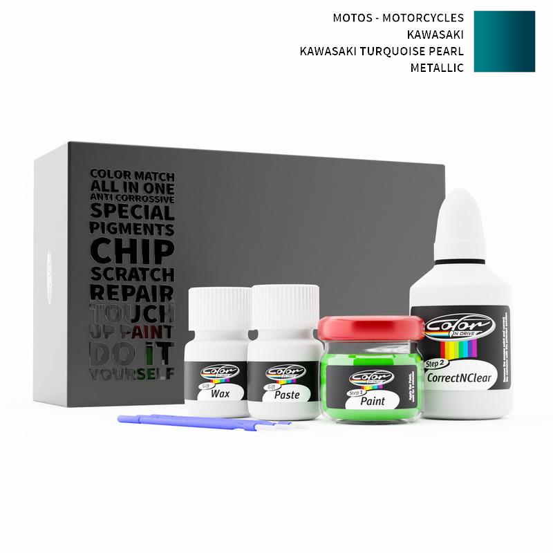 Our patented solution system only treats the special paint we mix for your Motos - Motorcycles Kawasaki Kawasaki Turquoise Pearl Metallic and does not interfere with your factory paint. By this method we are sure that you can not harm your Motos - Motorcycles Kawasaki Kawasaki Turquoise Pearl Metallic Color and you can do repairs like a pro for your Motos - Motorcycles with KAWASAKI TURQUOISE PEARL METALLIC color.