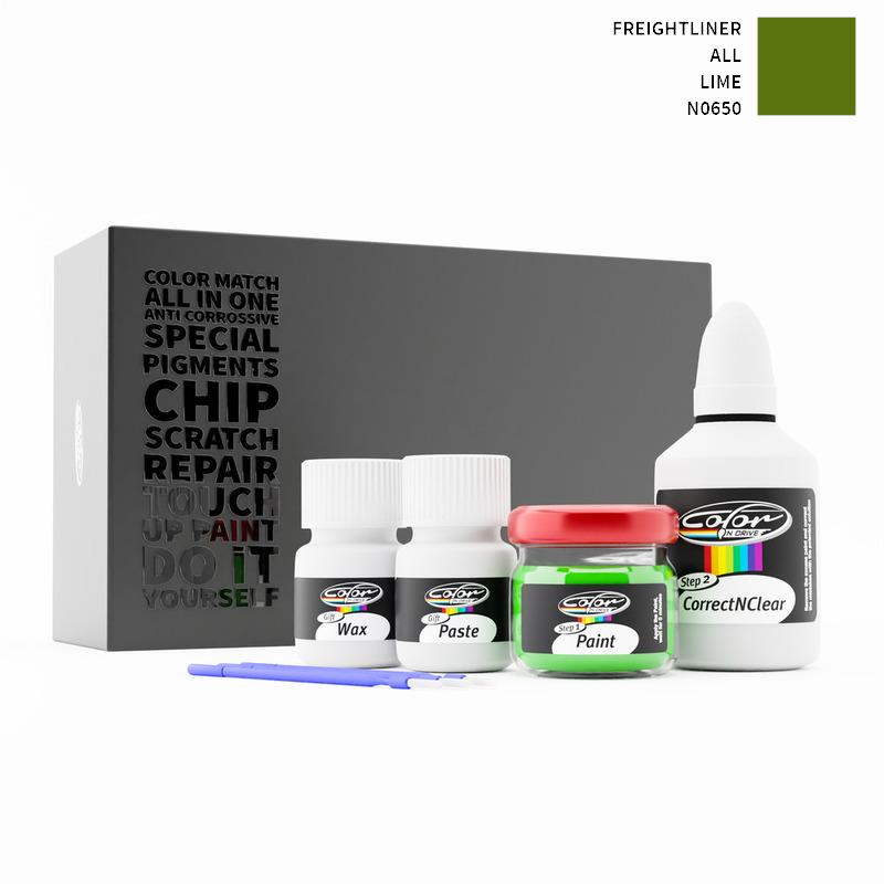 Sig farvel til stenslag og ridser på din Freightliner ALL Lime N0650. Med patenteret tysk teknologi løser Color N Drive dit problem i 3 enkle trin. Hvert KIT er specialfremstillet i overensstemmelse med din bilproducents originale lakfarve.