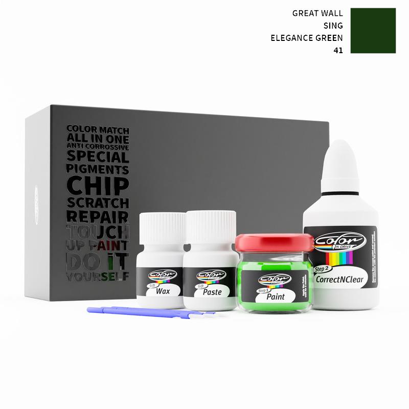 Sig farvel til stenslag og ridser på din Great Wall Sing Elegance Green 41. Med patenteret tysk teknologi løser Color N Drive dit problem i 3 enkle trin. Hvert KIT er specialfremstillet i overensstemmelse med din bilproducents originale lakfarve.