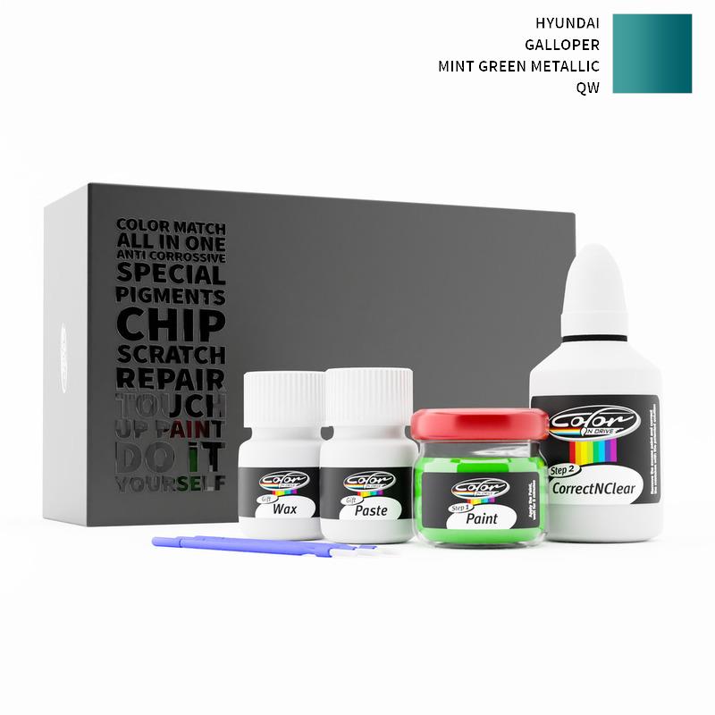 Our patented solution system only treats the special paint we mix for your Hyundai Galloper Mint Green Metallic QW and does not interfere with your factory paint. By this method we are sure that you can not harm your Hyundai Galloper Mint Green Metallic QW Color and you can do repairs like a pro for your Hyundai with MINT GREEN METALLIC color.