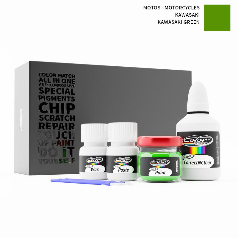 Say bye to your stone chips and scratches in your Motos - Motorcycles Kawasaki Kawasaki Green . With German patented technology Color N Drive puts an end to your problem in 3 basic steps. Evey KIT is custom prepared in line with your manufacturer's choice on original paint brand.