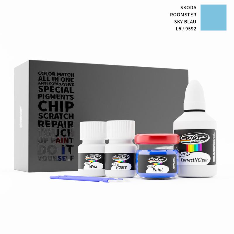 Our patented solution system only treats the special paint we mix for your Skoda Roomster Sky Blau 9592 / L6 and does not interfere with your factory paint. By this method we are sure that you can not harm your Skoda Roomster Sky Blau 9592 / L6 Color and you can do repairs like a pro for your Skoda with SKY BLAU color.