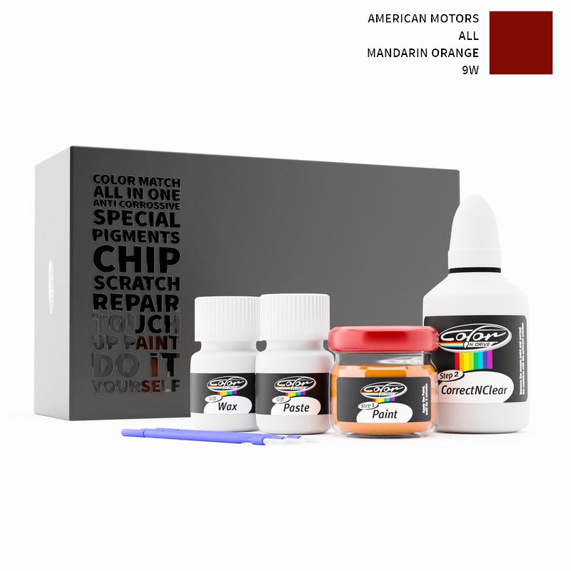 Neem afscheid van steenslag en krassen op uw American Motors ALL Mandarin Orange 9W. Met gepatenteerde Duitse technologie lost Color N Drive uw probleem op in 3 eenvoudige stappen. Elke KIT wordt op maat bereid volgens de originele lakkleur van uw fabrikant.