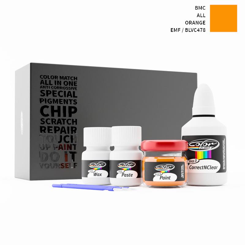 Neem afscheid van steenslag en krassen op uw BMC ALL Orange EMF / BLVC478. Met gepatenteerde Duitse technologie lost Color N Drive uw probleem op in 3 eenvoudige stappen. Elke KIT wordt op maat bereid volgens de originele lakkleur van uw fabrikant.
