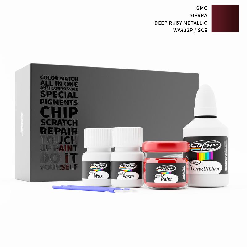 Ons gepatenteerde oplossingssysteem behandelt alleen de speciale lak die wij voor uw GMC Sierra Deep Ruby Metallic WA412P / GCE mengen en tast de fabriekslak van uw GMC niet aan. Met deze methode zijn wij er zeker van dat u de kleur van uw GMC Sierra Deep Ruby Metallic WA412P / GCE niet kunt beschadigen en dat u reparaties als een professional kunt uitvoeren op uw GMC met de kleur DEEP RUBY METALLIC.