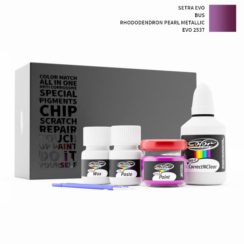 Neem afscheid van steenslag en krassen op uw Setra Evo BUS Rhododendron Pearl Metallic EVO 2537. Met gepatenteerde Duitse technologie lost Color N Drive uw probleem op in 3 eenvoudige stappen. Elke KIT wordt op maat bereid volgens de originele lakkleur van uw fabrikant.