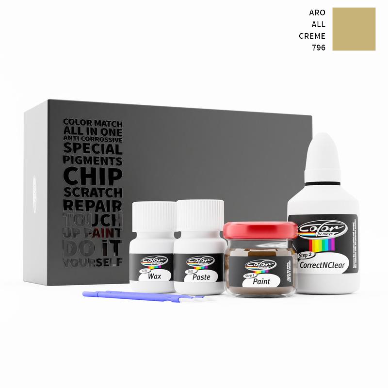 Si ha det til steinsprut og riper på din ARO ALL Creme 796. Med patentert tysk teknologi løser Color N Drive problemet ditt i 3 enkle trinn. Hvert KIT er spesialtilvirket i samsvar med bilprodusentens originale lakkfarge.