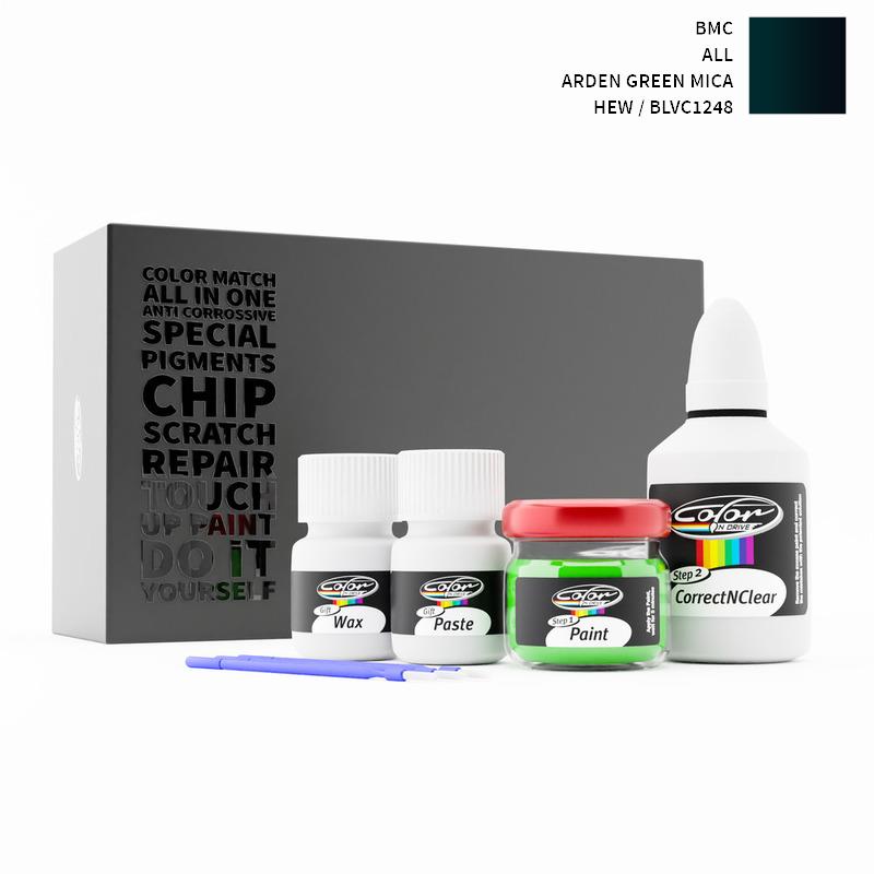 Si ha det til steinsprut og riper på din BMC ALL Arden Green Mica HEW / BLVC1248. Med patentert tysk teknologi løser Color N Drive problemet ditt i 3 enkle trinn. Hvert KIT er spesialtilvirket i samsvar med bilprodusentens originale lakkfarge.