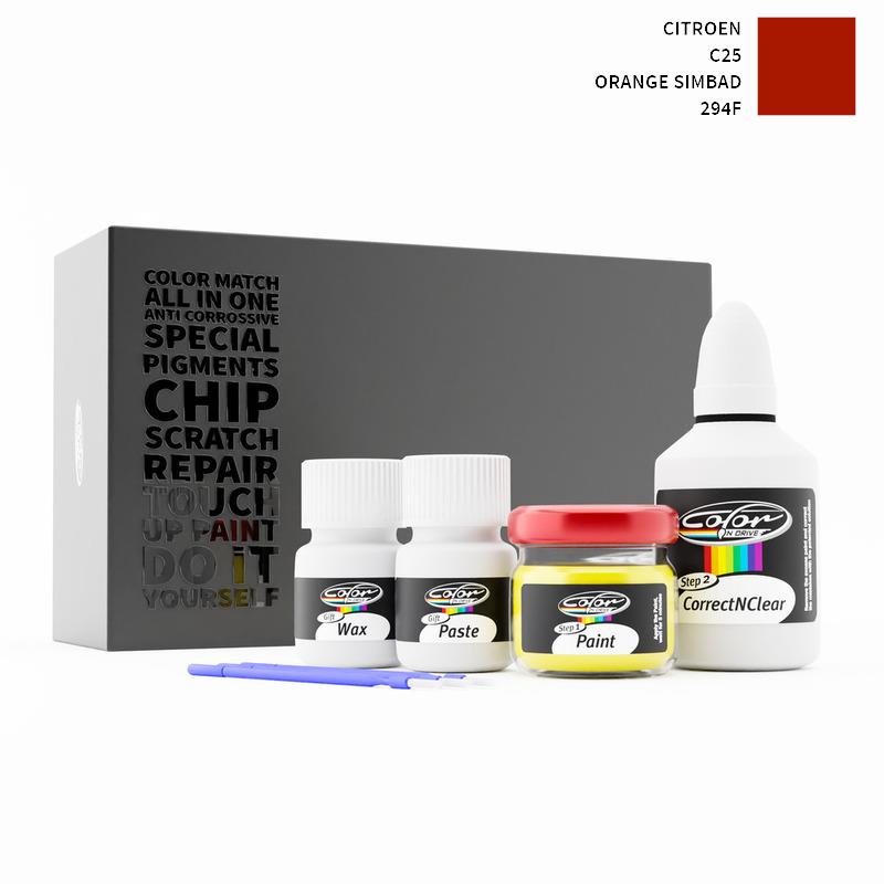 Si ha det til steinsprut og riper på din Citroen C25 Orange Simbad 294F. Med patentert tysk teknologi løser Color N Drive problemet ditt i 3 enkle trinn. Hvert KIT er spesialtilvirket i samsvar med bilprodusentens originale lakkfarge.