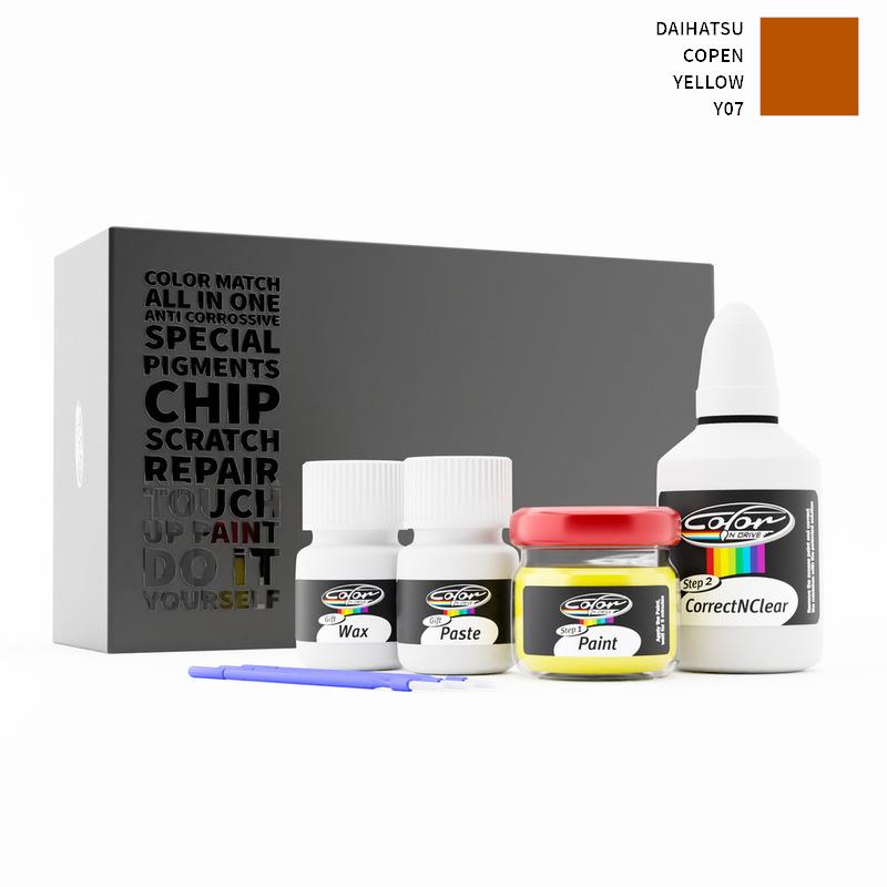 Si ha det til steinsprut og riper på din Daihatsu Copen Yellow Y07. Med patentert tysk teknologi løser Color N Drive problemet ditt i 3 enkle trinn. Hvert KIT er spesialtilvirket i samsvar med bilprodusentens originale lakkfarge.