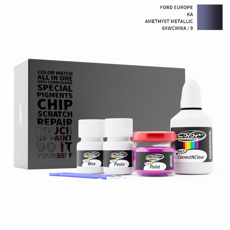 Si ha det til steinsprut og riper på din Ford Europe KA Amethyst Metallic 9 / 6XWCWWA. Med patentert tysk teknologi løser Color N Drive problemet ditt i 3 enkle trinn. Hvert KIT er spesialtilvirket i samsvar med bilprodusentens originale lakkfarge.