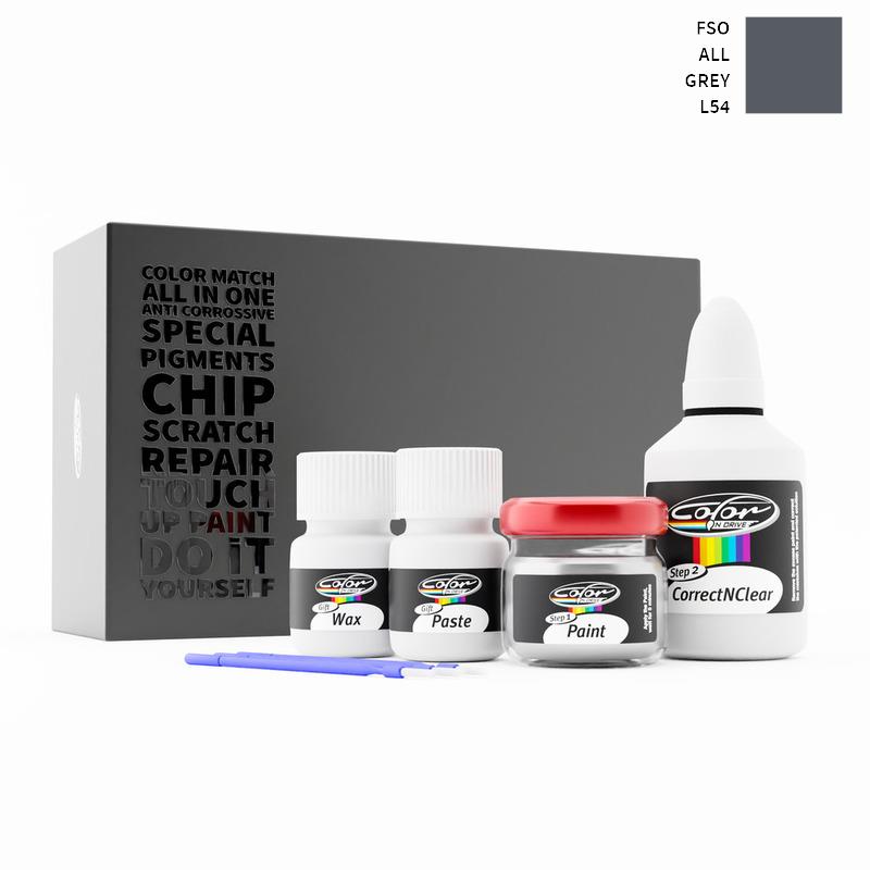 Si ha det til steinsprut og riper på din FSO ALL Grey L54. Med patentert tysk teknologi løser Color N Drive problemet ditt i 3 enkle trinn. Hvert KIT er spesialtilvirket i samsvar med bilprodusentens originale lakkfarge.