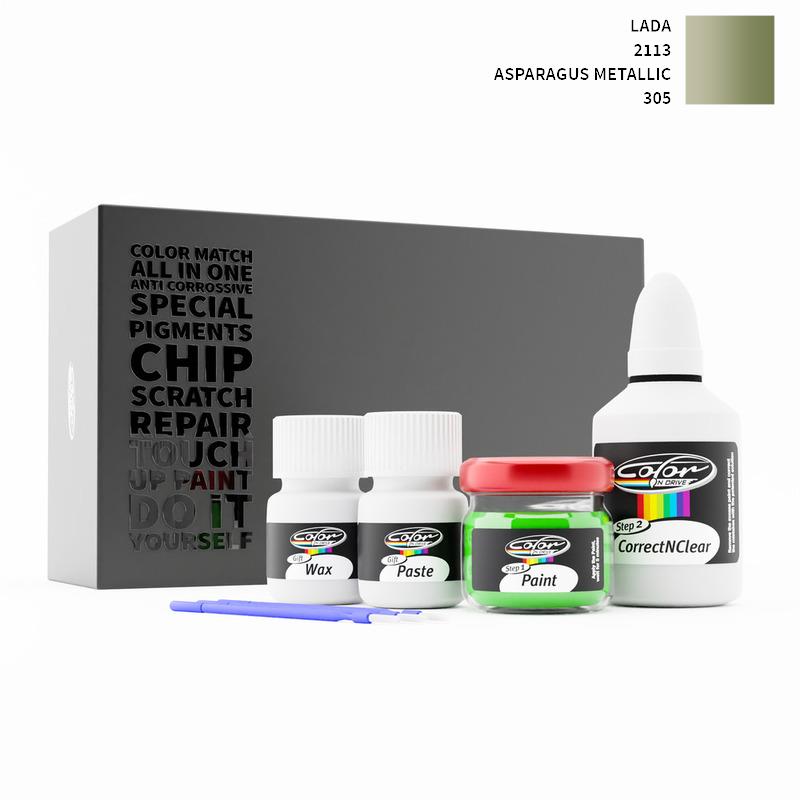 Si ha det til steinsprut og riper på din Lada 2113 Asparagus Metallic 305. Med patentert tysk teknologi løser Color N Drive problemet ditt i 3 enkle trinn. Hvert KIT er spesialtilvirket i samsvar med bilprodusentens originale lakkfarge.