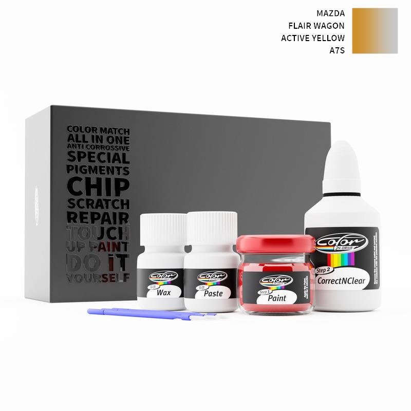 Si ha det til steinsprut og riper på din Mazda Flair Wagon Active Yellow A7S. Med patentert tysk teknologi løser Color N Drive problemet ditt i 3 enkle trinn. Hvert KIT er spesialtilvirket i samsvar med bilprodusentens originale lakkfarge.