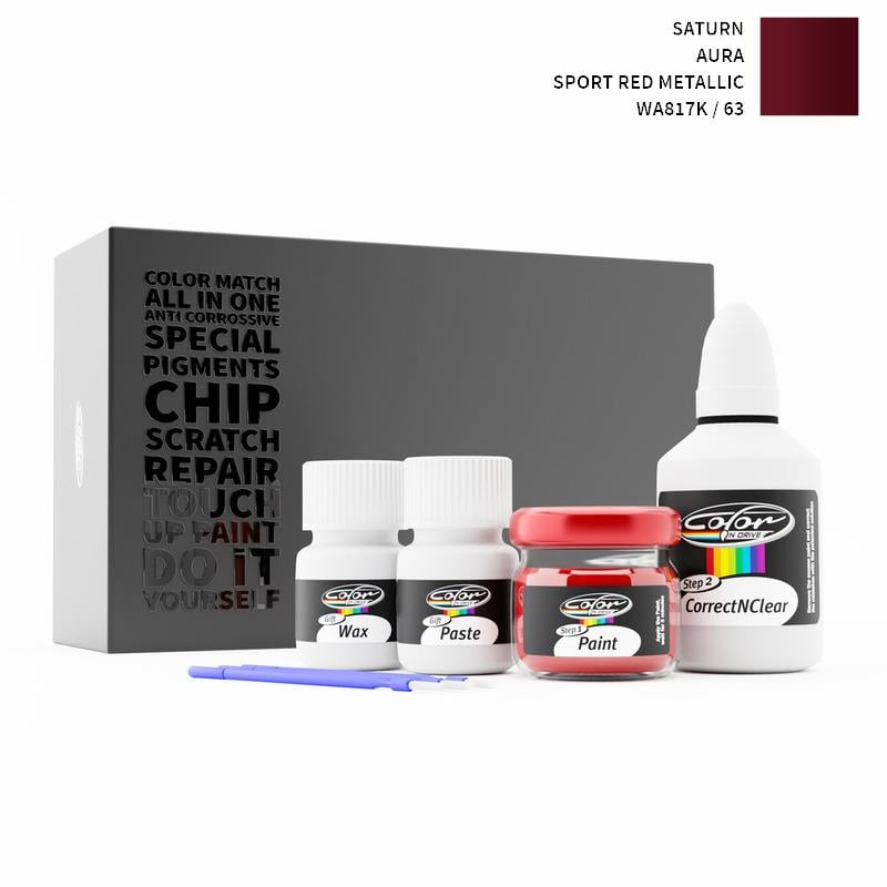 Si ha det til steinsprut og riper på din Saturn Aura Sport Red Metallic WA817K / 63. Med patentert tysk teknologi løser Color N Drive problemet ditt i 3 enkle trinn. Hvert KIT er spesialtilvirket i samsvar med bilprodusentens originale lakkfarge.