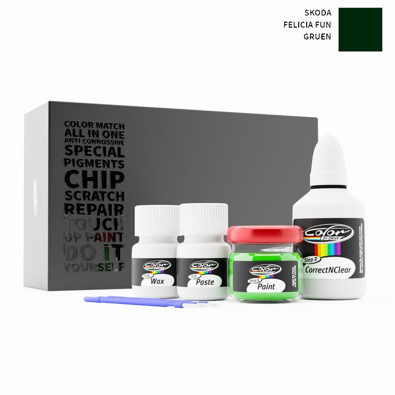 Si ha det til steinsprut og riper på din Skoda Felicia Fun Gruen . Med patentert tysk teknologi løser Color N Drive problemet ditt i 3 enkle trinn. Hvert KIT er spesialtilvirket i samsvar med bilprodusentens originale lakkfarge.