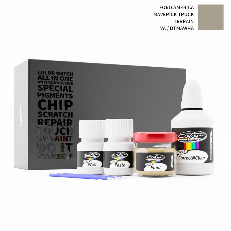Our patented solution system only treats the special paint we mix for your Ford America Maverick Truck Terrain VA / DTMAWHA and does not interfere with your factory paint. By this method we are sure that you can not harm your Ford America Maverick Truck Terrain VA / DTMAWHA Color and you can do repairs like a pro for your Ford America with TERRAIN color.