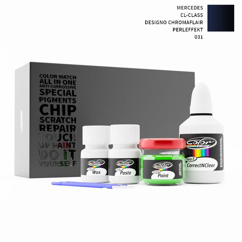 Say bye to your stone chips and scratches in your Mercedes Cl-Class Designo Chromaflair Perleffekt 031. With German patented technology Color N Drive puts an end to your problem in 3 basic steps. Evey KIT is custom prepared in line with your manufacturer's choice on original paint brand.