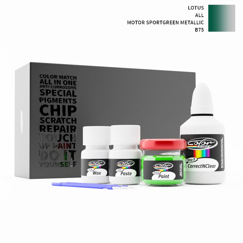 Pożegnaj odpryski i rysy na swoim Lotus ALL Motor Sportgreen Metallic B75. Dzięki opatentowanej niemieckiej technologii Color N Drive rozwiązuje Twój problem w 3 prostych krokach. Każdy ZESTAW jest specjalnie przygotowany zgodnie z oryginalną marką lakieru wybraną przez producenta.