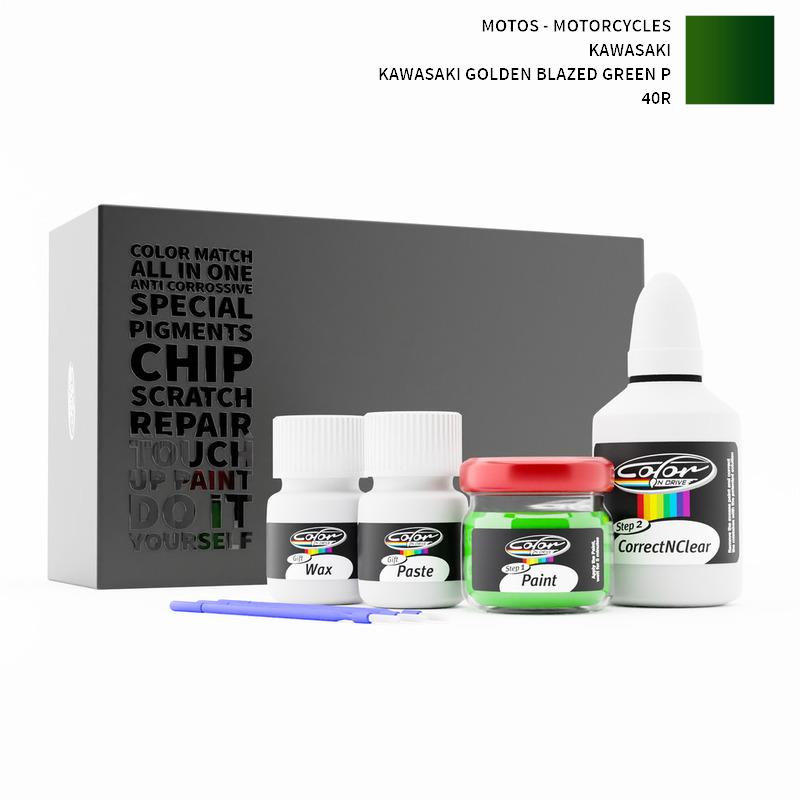 Pożegnaj odpryski i rysy na swoim Motos - Motorcycles Kawasaki Kawasaki Golden Blazed Green P 40R. Dzięki opatentowanej niemieckiej technologii Color N Drive rozwiązuje Twój problem w 3 prostych krokach. Każdy ZESTAW jest specjalnie przygotowany zgodnie z oryginalną marką lakieru wybraną przez producenta.