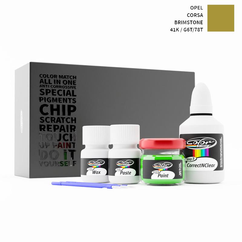 Säg hejdå till stenskott och repor på din Opel Corsa Brimstone 41K / G6T/78T. Med patenterad tysk teknologi löser Color N Drive ditt problem i 3 enkla steg. Varje KIT specialtillverkas enligt din biltillverkares originalfärg.