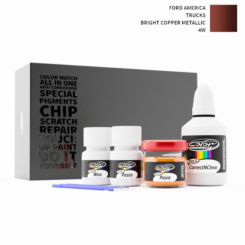 Our patented solution system only treats the special paint we mix for your Ford America Trucks Bright Copper Metallic 4W and does not interfere with your factory paint. By this method we are sure that you can not harm your Ford America Trucks Bright Copper Metallic 4W Color and you can do repairs like a pro for your Ford America with BRIGHT COPPER METALLIC color.
