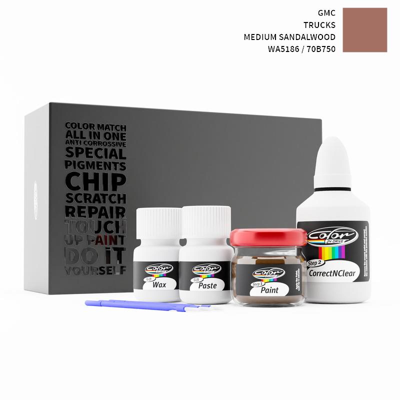 Our patented solution system only treats the special paint we mix for your GMC Trucks Medium Sandalwood WA5186 / 70B750 and does not interfere with your factory paint. By this method we are sure that you can not harm your GMC Trucks Medium Sandalwood WA5186 / 70B750 Color and you can do repairs like a pro for your GMC with MEDIUM SANDALWOOD color.
