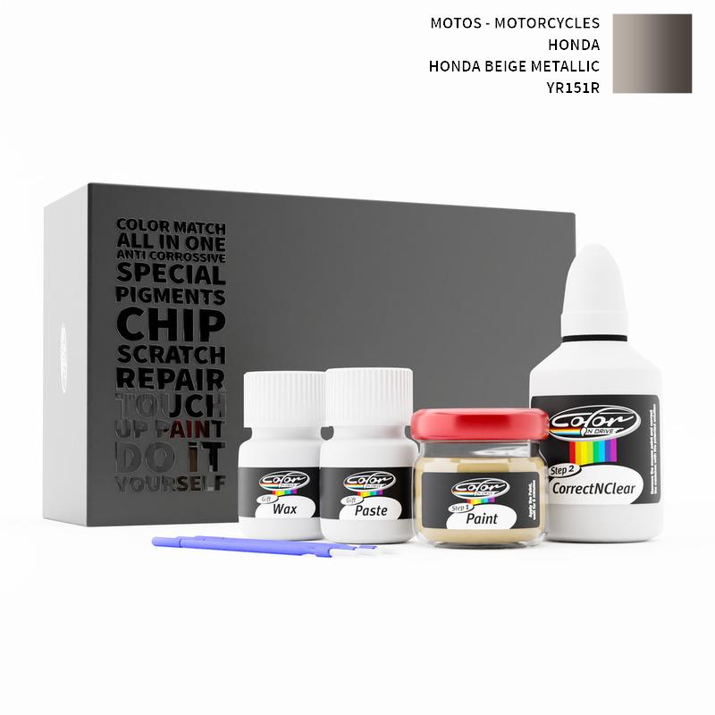 Our patented solution system only treats the special paint we mix for your Motos - Motorcycles Honda Honda Beige Metallic YR151R and does not interfere with your factory paint. By this method we are sure that you can not harm your Motos - Motorcycles Honda Honda Beige Metallic YR151R Color and you can do repairs like a pro for your Motos - Motorcycles with HONDA BEIGE METALLIC color.