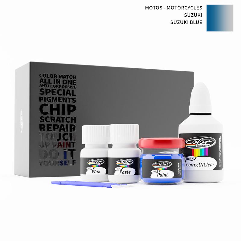 Say bye to your stone chips and scratches in your Motos - Motorcycles Suzuki Suzuki Blue . With German patented technology Color N Drive puts an end to your problem in 3 basic steps. Evey KIT is custom prepared in line with your manufacturer's choice on original paint brand.